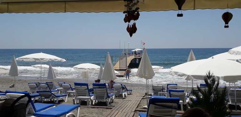 сдается квартира в Алании для семьи До 4х человек, с панорамным видом на море в закрытом комплексе с открытым бассейном, оборудованным пляжем. До моря всего 30-50 метров по подземному переходу от комплекса. На пляже пляжное кафе( есть детское меню), пирс, ШЕЗЛОНГИ и зонтики.