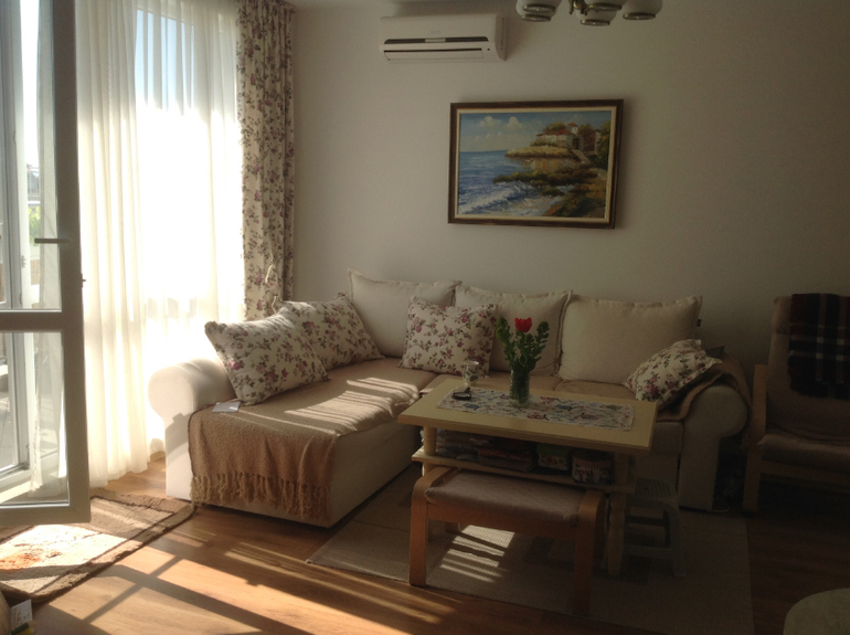 Сдаю аппартамент с двумя спальнями в тихом и спокойном городке в 50 км от Варны. Одна спальня с двухспальной кроватью, вторая с полуторной, гостиная с полностью оборудованной кухней и двуспальным диваном. Квартира полностью укомплектована всей необходимой техникой, есть стиральная машина, бесплатный вай-фай, русское телевидение. Аппартамент в закрытом комплексе на 5 этаже с большой верандой, в доме имеется лифт, детский и взрослый бассейны, бесплатный паркинг около дома. В пяти минутах ходьбы чистые и просторные пляжи, находящиеся под контролем служб спасения. На пляже есть водная горка, в городке много кафе и ресторанчиков, детские аттракционы и цирк- шапито, совсем близко аквапарк. Стоимость май, октябрь - 25 евро, июнь-сентябрь - 40 евро в день.возможен трансфер из аэропортов Варна 20 евро, Бургас - 25 евро.