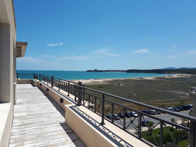 Отель находится в самом тихом и спокойном , экологически чистом районе города ,в 100 метрах от чистого, очень красивого ,немноголюдного южного пляжа протяженностью более 4х километров! Однако в пешей доступности кафе, рестораны, ночной клуб. Популярное место для занятий кайт серфингом, на пляже имеются водные развлечения. Всего в 20 километрах от Приморско находится старейший город на черноморском побережье- Созополь. В окрестностях находятся Беглик-Таш, Масляный нос и множество других интересных мест. Цена от 40 евро-до 60 , в зависимости от сезона. студии от 35 евро. +7-952-237-71-55