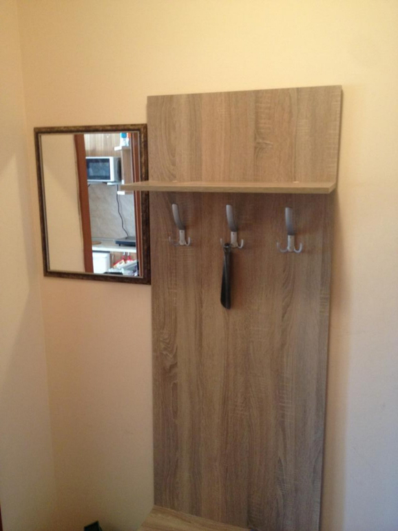 Встроенная кухня оборудована всем необходимым: керамическая эл.плта, холодильник, вытяжка, микроволновая печь, эл.чайник, кофеварка, столовые приборы, посуда.