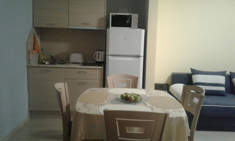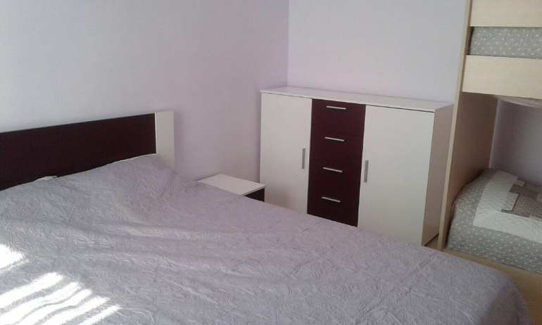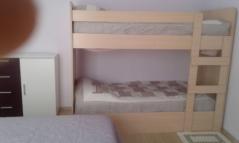 Апартаменты полностью меблированы, оснащены необходимой бытовой техникой: плита, чайник, тостер, блендер, микроволновая печь, холодильник, телевизор, стиральная машина, утюг, фен, кондиционер. В спальне 2-х спальная кровать и 2-х ярусная детская кровать, в гостиной 2-х спальный диван.
