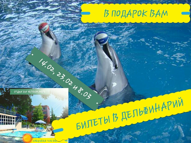 Завтра самое время!!! Почему? Да потому, что при бронировании номера в День Защитника Отечества Вы получите ПОДАРОК🎁. БИЛЕТЫ НА ПОСЕЩЕНИЕ ДЕЛЬФИНАРИЯ в пос. Лазаревском на всю семью!!!Подарите себе незабываемый отдых🔥🔥🔥, а мы Вам подарим Позитивные Эмоции и впечатления от шоу этих замечательный животных🐋🐋🐋.