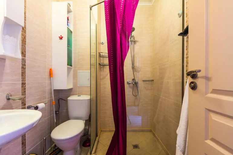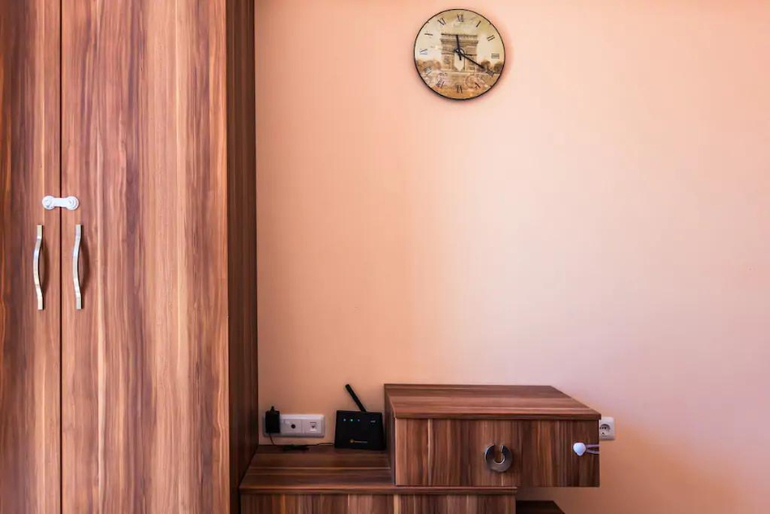 Wi-Fi и кабельное ТВ в квартире. Балкон выходит во двор с детским бассейном и площадкой - если ребенок уже самостоятельный, можно присмотреть за ним, не выходя из номера. За территорию выход только через здание по чипам - без спроса не убежит.