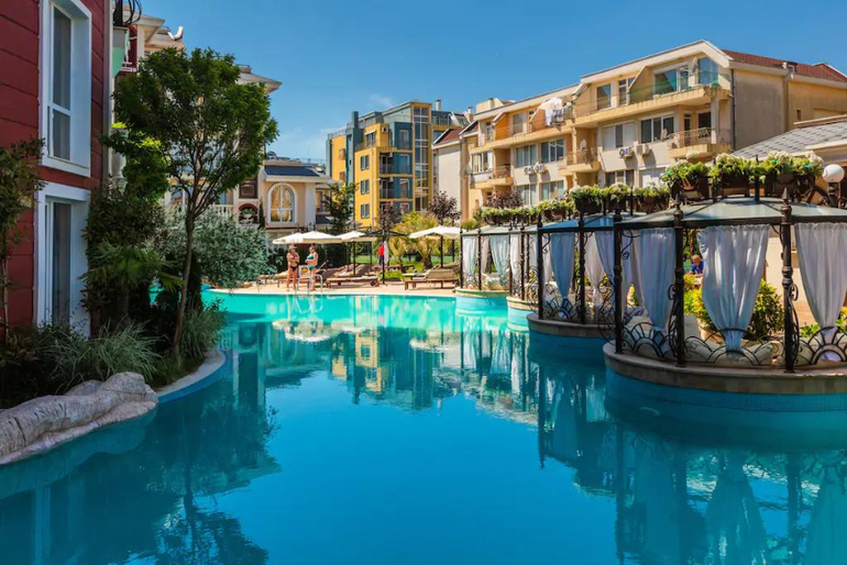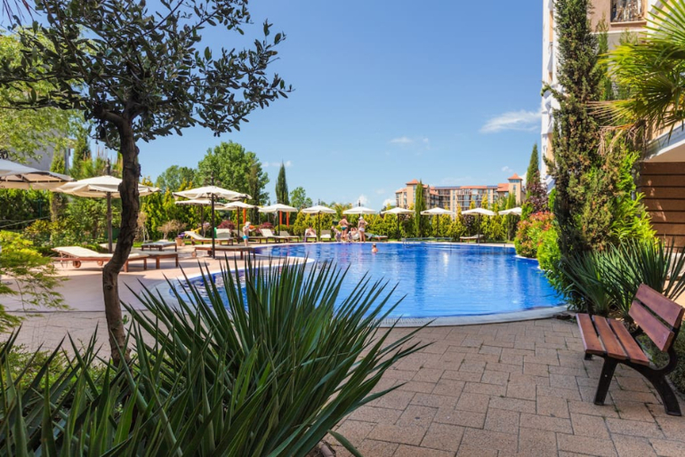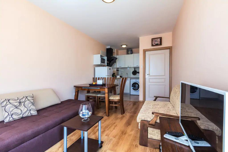 А я в двух шагах от этого праздника жизни сдаю аппартамент с гостиной, в которой есть кухонный уголок, и отдельной спальней. В Несебре, на границе с Солнечным Берегом. В небольшом комплексе, больше похожем на клубный дом, а не на огромный санаторий.