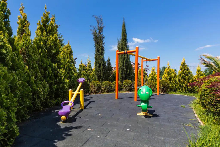 Все видно на фото. Комплекс небольшой, все свои, на территории никаких баров и ресторанов, только бассейны и тропический парк. Есть детская и спортивная площадки.