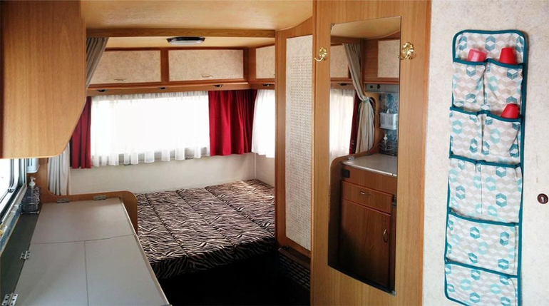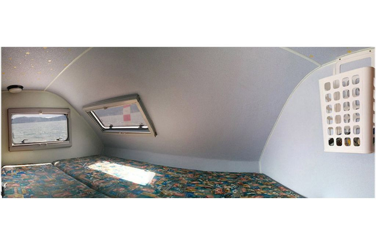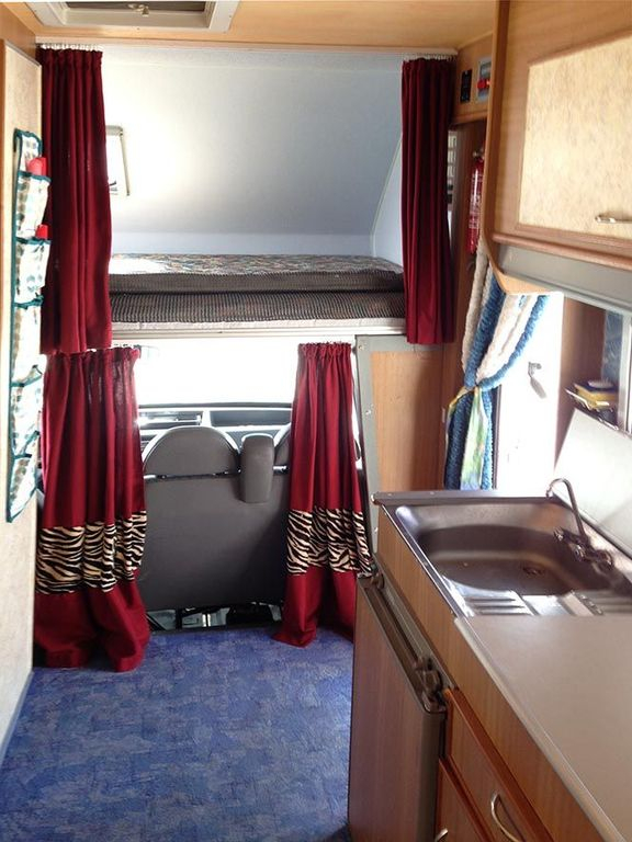 Жилое помещение автодома включает в себя четыре уютных спальных места, над кабиной водителя для двух человек (размеры 2,1 х 1,5 метра) с довольно высоким потолком для автомобилей данного вида, нижний диван так же расчитан на двух человек (размеры 2,1 х 1,6 метра).