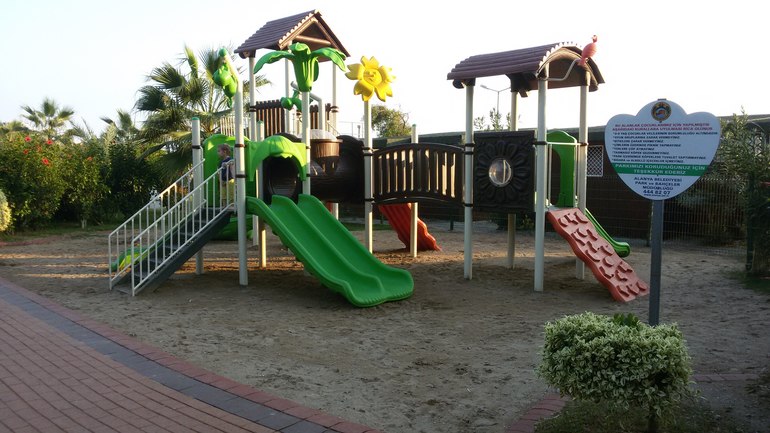 Около комплекса вы найдете множество различных кафе и ресторанчиков, магазинов и маркетов (в шаговой доступности супермаркеты Bim, A101 и Migros, салон красоты, спа-центр, недалеко крупный торговый центр Alanyum и конечно субботний рынок), также есть несколько детских площадок и небольших парков