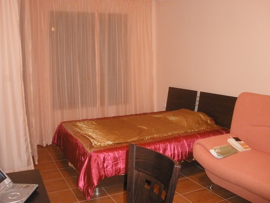 Симпатичная студия в светло-розовых тонах, 45 кв. м. в элитном комплексе на З-м эт. 4- эт. здания. До ближайших двух пляжей 5 минут прогулочным шагом. Пляж чистый песчаный бесплатный, всё есть для комфорта. В квартире двуспальная кровать, раскладной диван, раздвижной стол на 4 персоны, 4 высоких стула, 2 пуфика. Большой комод с 3 выдвижными широкими ящиками. Спутниковое телевидение, Интернет, кондиционер. Оборудованная кухня, душевая кабина, евро санузел. В прихожей большой гардероб, зеркало на всю стену. Стиральная машина. На территории комплекса свой открытый «изумрудный» бассейн, терраса для отдыха и загорания (взрослые и дети). Рядом с подъездом кафе - ресторан с дешёвой домашней болгарской кухней. Возможна доставка в номер! Детская площадка прямо под окном - удобно контролировать ребенка с балкона, не выходя из квартиры. Большой торговый центр - Гранд Маркет Меркурий (продуктовый и промтоварный супермаркет, банк, бытовые службы) - 3 мин. ходьбы! Рядом автобусная остановка для поездки в центр (2 ост), где все развлечения, аттракционы, аквапарк, магазины и др., а также для поездки в Солнечный Берег, и старинный город Несебр. Всегда можно обратиться к управляющей комплексом по любым вопросам (аптека, врач, экскурсии и т. д.).