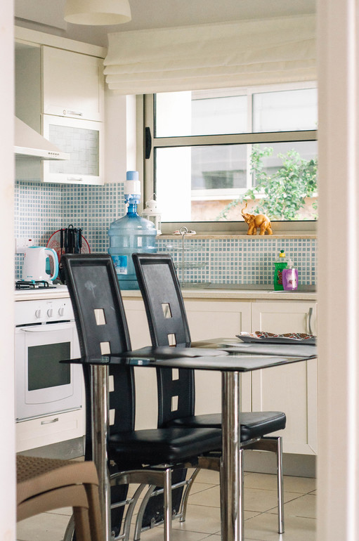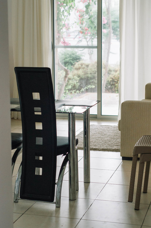 Апартаменты имеют панорамные окна в спальной комнате и кухне-гостиной с выходом на террасу. Полностью меблированы, оснащены необходимой бытовой техникой. В большой кухне - гостиной - телевизор, раскладывающийся диван.