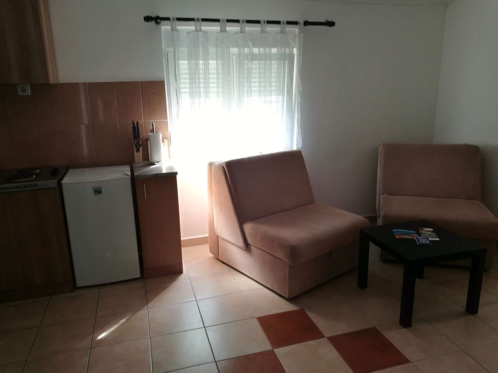 Апартаменты односпальные, с мини кухней и ванной комнатой. Есть также паркинг место. Небольшой дворик, место для гриля. В 5 км от аэропорта, по запросу трансфер из Тиватского аэропорта.
