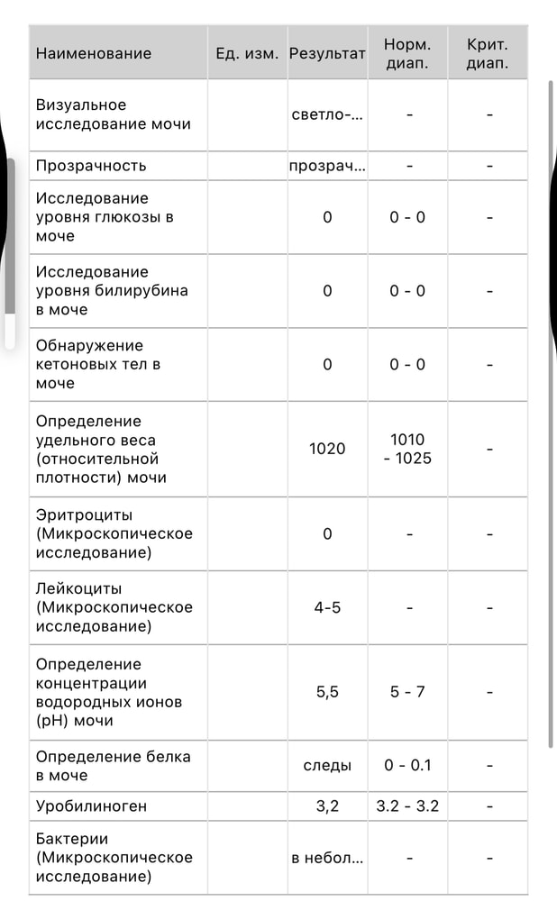 «критический уровень» лейкоцитов в моче по общему анализу.