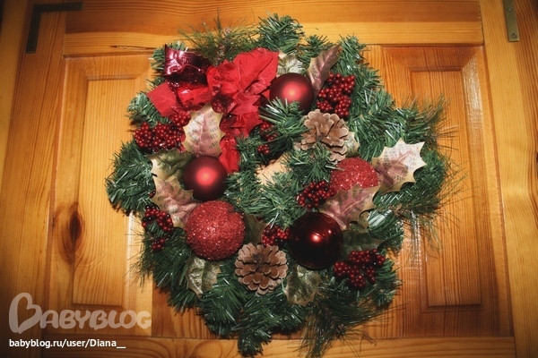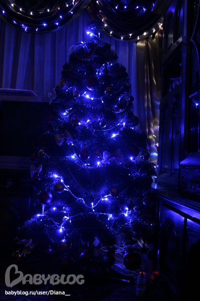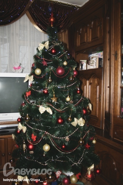 Изначально планировала украсить в золотих тонах, а в магазине муж предложил ещё и красный внести цвет))) А вот огоньки мы брали на базаре, и нам не повезло, за первуй вечер, что они горели, большое количество их перегорело, вот вам качество! Брали в прошлом году, эту фирму, отработали 2 месяца и в этом году их вцепила, а эти стали гореть уже в первуй день. Так что завтра поедим за новой гирляндой…