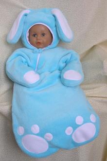 Зато купили уже в Москве голубой комбез-конверт в виде зайца....