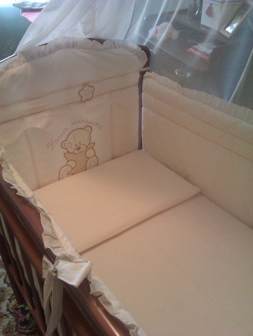 В целом из разговора с ним я поняла что он переживает не меньше моего,и боится тоже)Приятно когда есть поддержка в виде любимого сильного мужского плеча) Вот так)))) А ну и напоследок фото кроватки)Кочество не очень,на тел.фоткала)
