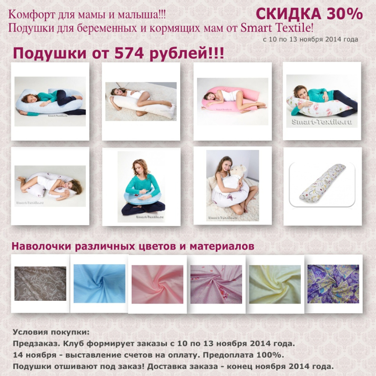 Скидка 30% - подушки для беременных и кормящих мам от Smart Textile (от 574 рублей за подушку!)