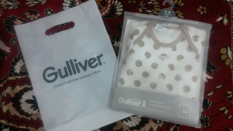 Вчера ходила в кино, и не удержалась, зашла в бутик детской одежды, Гулливер, как же там красота продается, еще и скидка была хорошая. себе ничего не стала покупать, рано... хотя очень хочется) а вот подруге которая родит 1 апреля , прикупила небольшой подарочек, и это только начало, хочу ей еще купить лежак-качалку, до 6 мес. а пока делюсь фото, качество просто шикарно. в наборе 2 футболки 3-6 мес. а вы брали деткам Гулливер. понравилось в использовании?