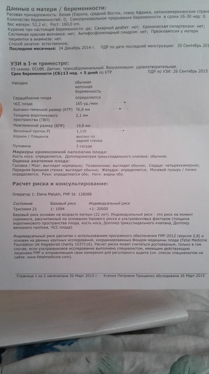 Сегодня наконец-то сходили с мужем на скрининг, пустили посмотреть на нашего малышастика ,сказали ,что скорее всего будет парень(уверенно очень говорила врач), по узи 13,5 ( а по месячным 13,1) ,разговаривает ,ручки в ротик берет,ножками упирается) прям рарадоваться не могла,жаль муж ничего не понял, из увиденного) а теперь вопрос, кто разбирается,скажите все в норме у нас? Врач сказала да