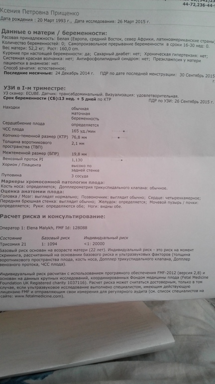 Странные какие-то, жмотины )) спасибо )) кровь тоже результат получили ,риск низкий ,патологий не выявили ))