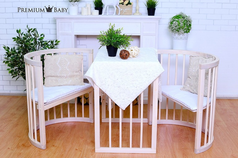 Каждый родитель хочет выбрать лучшее к рождению своего малыша. Детская коллекция PremiumBaby - именно то, что вы искали.. Кроватка - трансформер PremiumBaby - это бесподобный стиль, невероятная функциональность и отличное качество. .Кроватка хороша тем, что не имеет острых и прямых углов это гарантирует полную безопасность Вам и вашему малышу. Она легко трансформируется: в люльку для новорожденного, овальную кроватку, манеж, диванчик, рабочий стол и 2 стульчика.