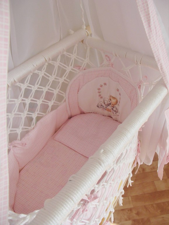 А может быть, и вот такую, но тут придется бортики повыше делать, чтобы малыш ручками-ножками не запутывался в этих дырочках, все же макраме красиво, но не практично