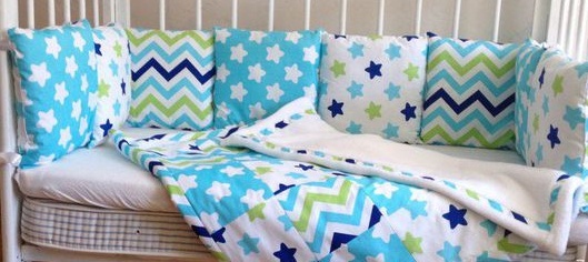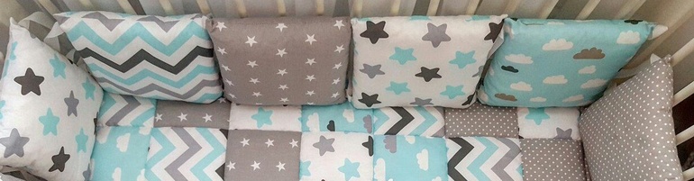 Девочки выручайте советом. Уже неделю ломаю голову над цветом бортиков, буду шить сама, и нужно заказывать ткань. А определиться не могу. Из исходных данных голубая комната, кроватка натурального цвета. И несколько вариантов: