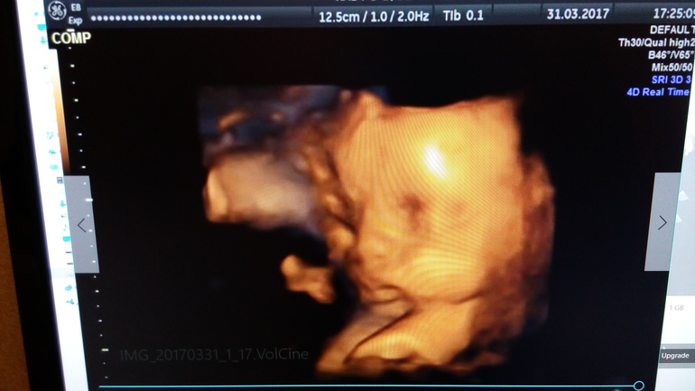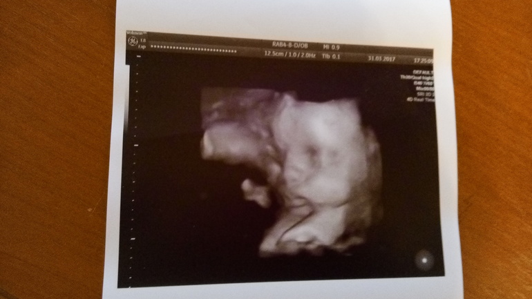 Сегодня съездили на УЗИ. Перед УЗИ съела сладкий пирожок и выпила капучино. Думала, что мелкий расшевелить счет от сладкого. Да не тут то было. Далее по кат.Наш малыш любитель поспать во время УЗИ) Вот и сегодня он в очередной раз доказал, что УЗИ нисколько не причиняет ему неудобств. Как ни пыталась его врач расшевелить, он сладко спал с полным желудком. Как настоящий мужчина - поел и на боковую. И ничто его не могло потревожить) Свернулся клубочком - коленками упирался в лоб. Так что четких фото в 3д, как я надеялась, не получилось. Но все же мы разглядели пухленькие щечки и не менее пухлые губки) . Весит уже 1500 кг примерно. Все соответствует сроку. А вот ноги и руки, как и в 16 недель , опережают по длине на неделю, полторы. Баскетболист там у нас похоже растет))) Руки на 30 недель, а ноги аж на 30.5! Похоже , опять вылитый муж.) Дочь у нас вылитый папа и лицом фигура ( ноги от ушей)))) Сынуля , видимо тоже))) Тонус мой чудесным образом исчез и миома тоже. Как ни старались, не нашли). Пока сидим на попе. Надеюсь, успеем перевернуться в головное.