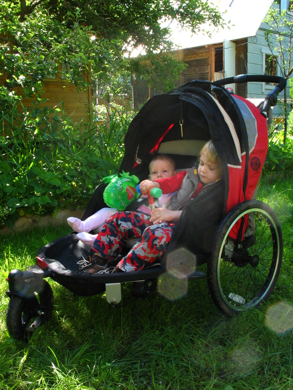 Нет вы знаете, мы справились так. Хотя тоже думали о коляске для погодок. Сын очень любил ходить с детства. Но были случаи, когда умотается, мне приходилось их укладывать вместе, как то я даже умудрялась это делать)) Но это было когда уже дочь в прогулку пересела. По мне удобнее взять для погодок)) Еще есть как вариант ступенька для коляски. Подружка моя возила на ступеньке. Но нас выручала еще одна коляска (точнее велоприцеп). Фото прилагаю.