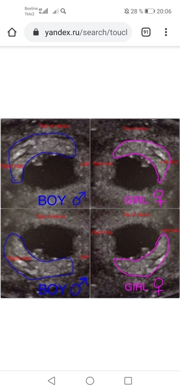 А мне кажется девочка ☺️ потому что и эмбрион и хорион расположены больше справа по снимку, то есть в реале слева 😁 что соответствует женскому полу по данному методу. Но как и у любого метода бывают погрешности, но я за девочку)))))