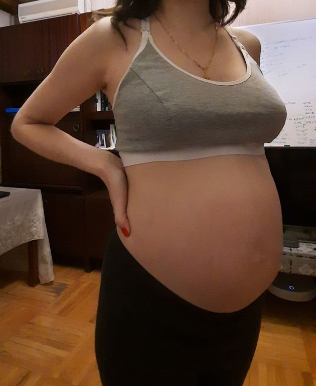 - на 26-ой неделе начало выделяться молозиво. Заметила по слегка намокшей футболке в районе сосков. Дала мужу занюхнуть, сказал, что пахнет чем-то медовым))) Потом еще в течение пары недель у меня выделялось уже не просто что-то прозрачное, как мне казалось, а прям белые капельки. Родственники в удивлении, ведь у них такого не было, а я почитала, что это физиологическая норма, и у каждого она своя. Купила лифчик для кормления, потому что он в виде топика, удобно носить дома, да и на будущее полезная вещь, как мне кажется.