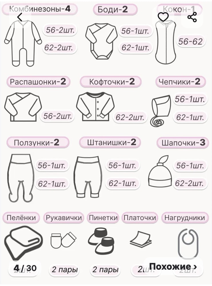 Я брала готовый набор типа вашего. Штаны в итоге ни разу не надели, ползунки нам удобнее оказались. Платочки не нужны. Из маленьких размеров выросла быстро, сейчас в два с половиной месяца окончательно выросла из всего комплекта. Распашонки и ползунки в этом плане носились дольше слипов и бодиков. А так в целом очень удобно, вообще не думала про одежду два месяца