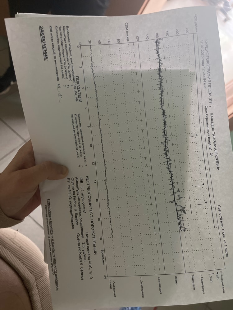Прикрепляю в 33 недели ктг и вот сегодняшнее в 34