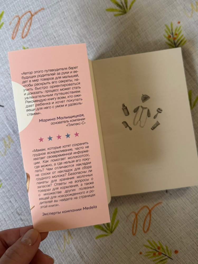 Я охватила максимум товаров: детскую одежду, подгузники (одноразовые и многоразовые), аптечку малыша, ванночку, кроватку, коляску, автокресло, слинг, подушку для беременных и кормящих, бандажи и т. д. Написала главы о вещах, которые помогут сохранить воспоминания о беременности и первых месяцах материнства, устроить интересные фотосессии.