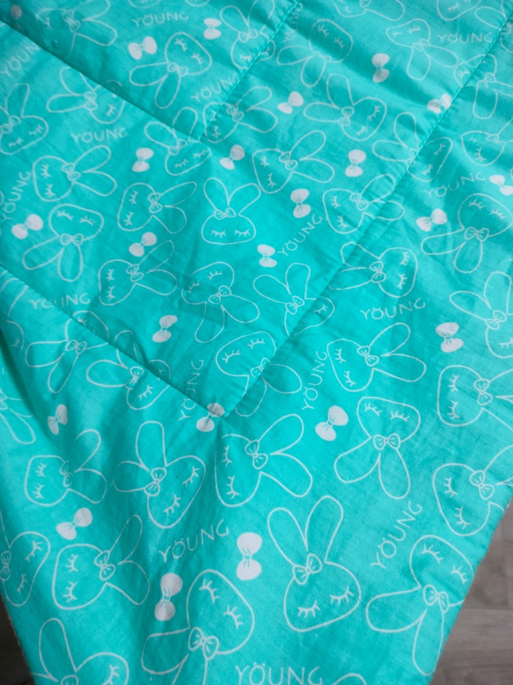 Нам подарили одеялко на выписку. Когда смотрела на него по фото, рисунок казался розовым (розовые буквы и зайки на бирюзовом фоне), но когда забрала, оказалось, что они белые.