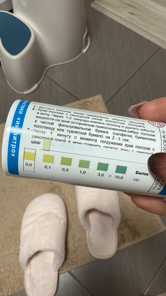 Всем добрый вечер, подскажите пожалуйста, сделала полоски урибел и не могу разобраться есть ли белок или нет, очень переживаю🫣 беременность 28 недель 💕