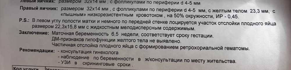 Отслойка на раннем сроке