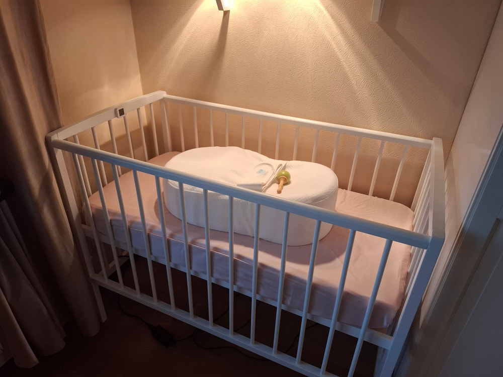 2. Кроватка. Самая простая деревянная "Фея". Без маятника, без бортиков и балдахина. Тут пометка: я юрист и параноик... у меня в первый же год адвокатской практики была женщина, у которой во время совместного сна задохнулся ребенок. Поэтому, какие бы приблуды не придумывали люди для безопасного совместного сна и как бы совместный сон не пропагандировали в массах, сама я чисто психологически на это никогда не пойду. Ни кого ни к чему не призываю, но все мы со своими тараканами. Матрасик твёрдый, кокосовый, наматрасник - непромокаемый и 3 простыни на резинке туда же...