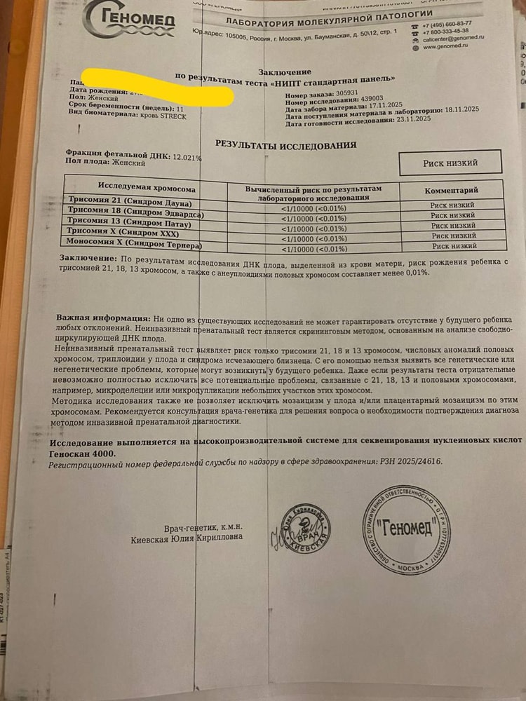 сдали Нипт, для себя, по рекомендации РЕ. На скрининг я ехала уже с готовым результатом