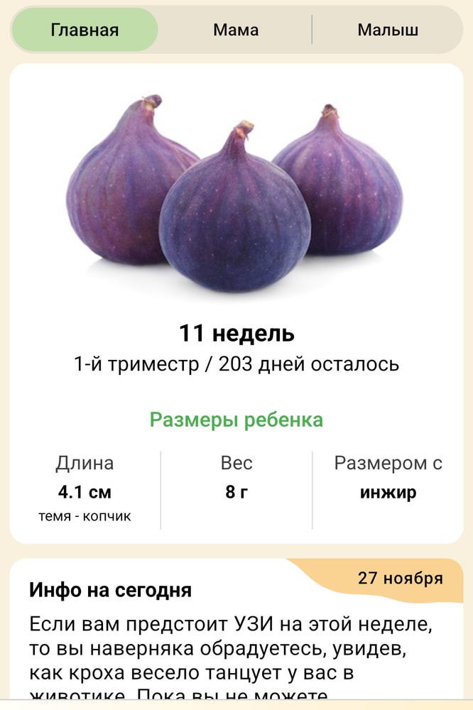 Срок бКак пролетели быстро дни, уже 11 недель, малыш размером с инжир 💜🥰