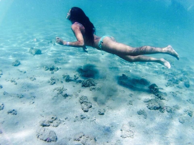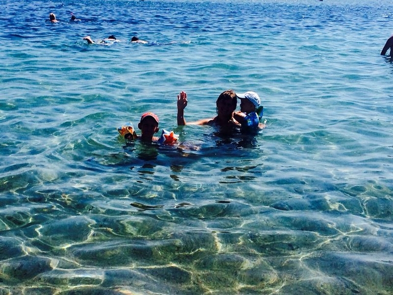 Девочки, покупайте удобные маски себе и деткам) Можно окунуться в такой невероятный мир! Если детки совсем маленькие, то можно и без маски. Все видно шикарно! В рифах живут мурены, скаты, ежички, рыбки как из мультика тысячи видов!)) Просто что то невероятное, правда! Остались в восторге не только я, но и мои девчонки) Если захватите с собой булочку, то рыбок можно даже покормить !!!