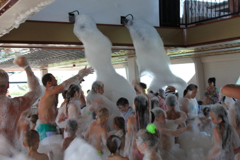 Не большой, но очень уютный отельчик. Атмосфера какая то домашняя, очень приятно. Море находится через дорогу, из отеля на пляж туннель. Два взрослых бассейна и один детский. Две не большие горки. Детская площадка с качелями и пластиковой горкой, миниклуб ( мы туда не ходили, но на детской анимации проходили награждения грамотами за участие в конкурсах в миниклубе, дети были рады!!!) Номер был стандарт, НО! разделен перегородкой на две части, и во второй части стоит диван. Очень удобно и здорово. Для Пашика принесли кровать-манеж. Кормили хорошо. Иногда младшему давала суп-пюре (если не острый был), очень понравился кукурузный! прям до скандала: давай еще! В ресторане стульчики для кормления были всегда. Вообще поесть можно было всегда, между завтраком-обедом-ужином возле бассейна картошка фри, гамбургеры, овощи, жареные булочки с начинками (сыр, колбаса), к вечеру печенье, вафли, бисквит. Анимация была, детскую видели, взрослую нет, уходили спать. Вообще не довольных не видели, с детьми очень много отдыхающих. Единственный минус, который нас чуть огорчил, это отсутствие съездов для колясок, в отеле много ступеней и приходилось либо таскать коляску на себе, либо оставлять её и идти с ребенком на руках.