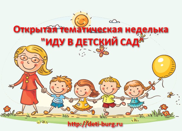 Если ваши дети тоже собираются в детский сад, предлагаю вам принять участие в открытой тематической недельке «Иду в детский сад», в течение которой мы будем читать книги, играть в сюжетно-ролевые игры, смотреть мультфильмы и заниматься творчеством на разные темы садовской жизни. Выполнение комплекса занятий, представленных в недельке, будет способствовать более легкой и мягкой адаптации детей к условиям детского сада и психологически подготовит их к новым переменам в жизни.