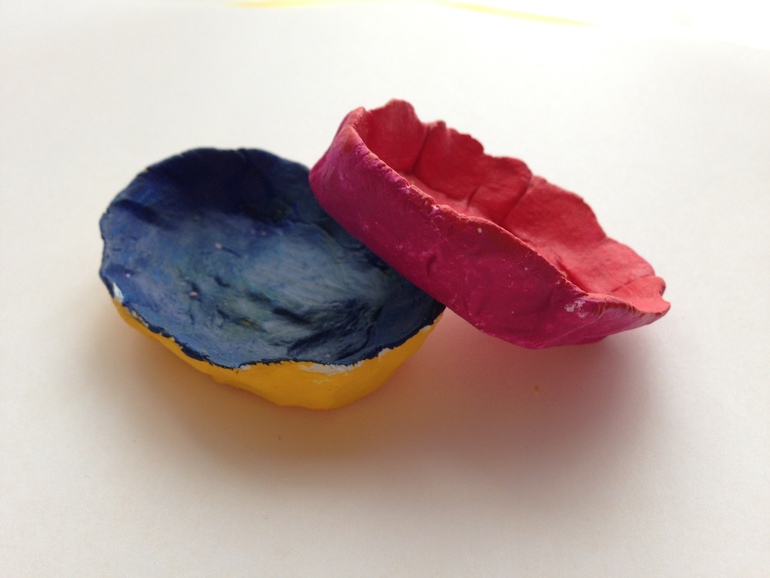 А это мисочки для кукол, одну лепила я, другую она. Но лепка не впечатлила ее так, как раскрашивание