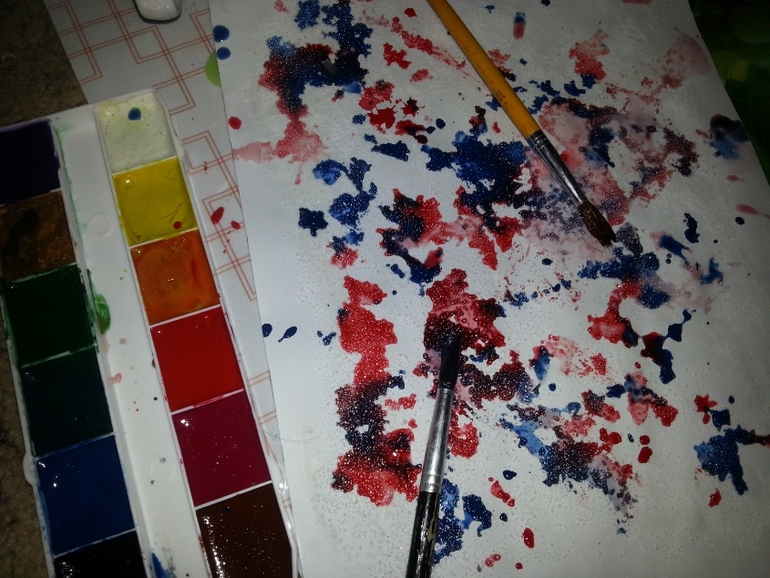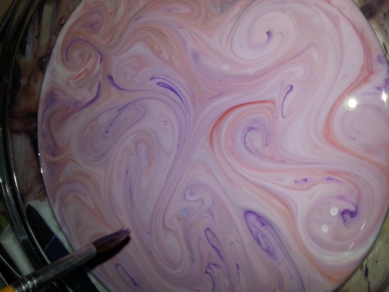 да, просто на молоке акварелью или гуашью, можно еще жидкость для мытья посуды добавить, вообще космос