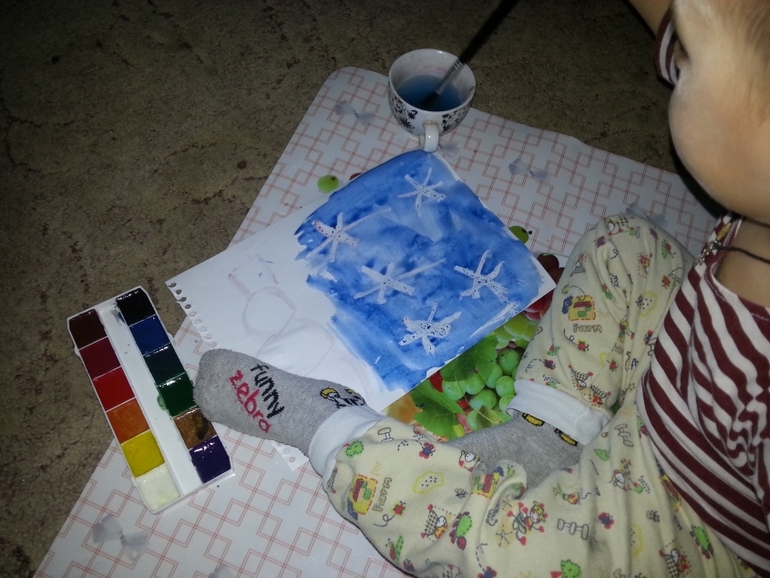 Рисовали на листах с восковым рисунком, на листах с солью и на молоке