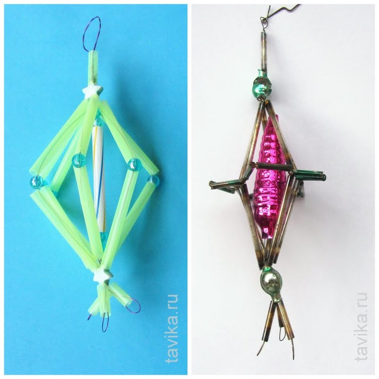 Галерея идейВпереди две недели новогодних каникул. И надо что-то придумать, чтобы провести их с пользой :) Предлагаю устроить мастерскую по созданию елочных игрушек из коктейльных трубочек. Такими игрушками можно украшать не только домашнюю елку, но и деревца во дворе и на улице - ведь эти игрушки не бьются и не портятся от дождя и снега. Вдохновило нас на такие поделки рассматривание старинных елочных украшений из стекляруса - помните такие из стеклянных трубочек и бусин на проволоке? Мы с дочкой нашли их фото и постарались воплотить эти конструкции из наших материалов. Очень развивает не только моторику, но и пространственное мышление и конструкторскую смекалку!