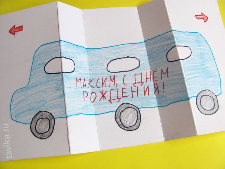 Галерея идейДети любят всякие интересные штучки. Вот и мы с дочкой подумали, что мальчику, к которому мы идем на день рождения, будет интереснее получить не просто открытку, а волшебную открытку, которая умеет превращаться. А делать ее очень просто - ребенок вполне справится сам. Вся технология понятна из фото.