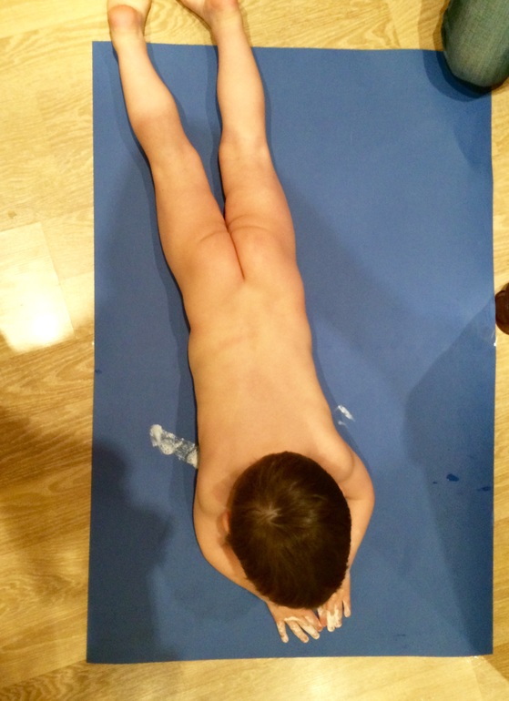 Мы рисовали несколькими способами. Сначала пузиком :)
