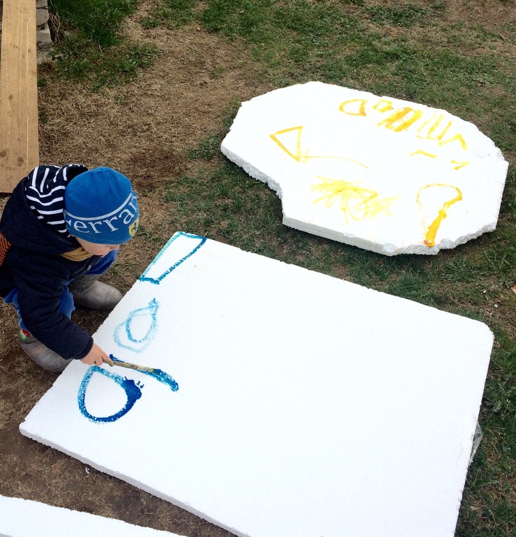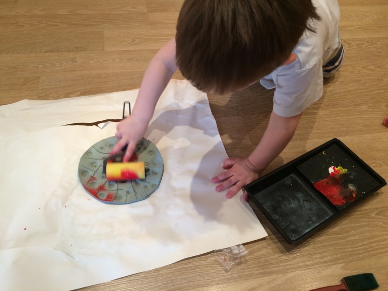Звезды рисовали пузырчатой пленкой ногами, Яр бегал с огромным удовольствием в чешках из такой пленки. И вот результат- ракета полетела :)