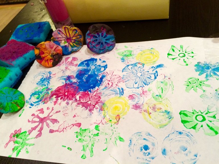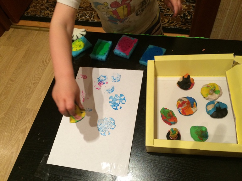 Мы попробовали сами делать штампы. За основу взяли пластилин, сделали на нем отпечатки разными предметами. Получились вот такие самодельные штампы