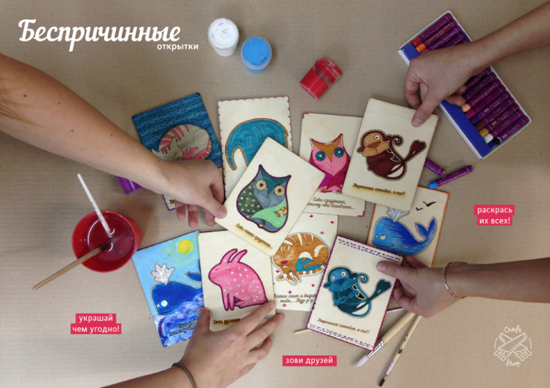 Мы молодая дизайн-мастерская Craftshop и мы придумали крутецкие Беспричинные Открытки!